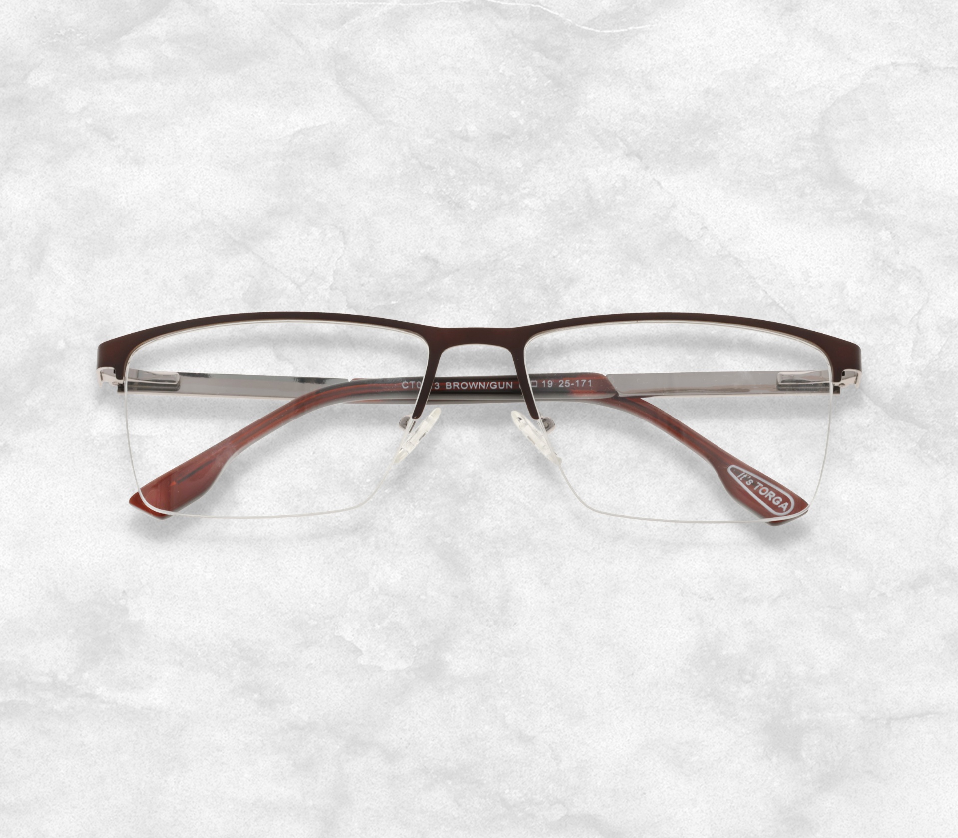 Torga designed & manufactured metal frame with prescription lenses.