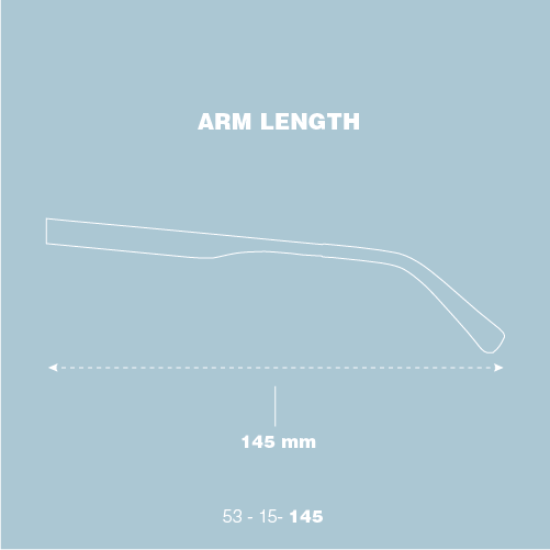 Lens width: 53 Bridge: 15 Temple: 145